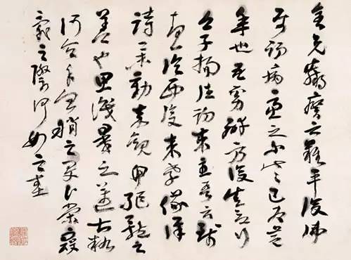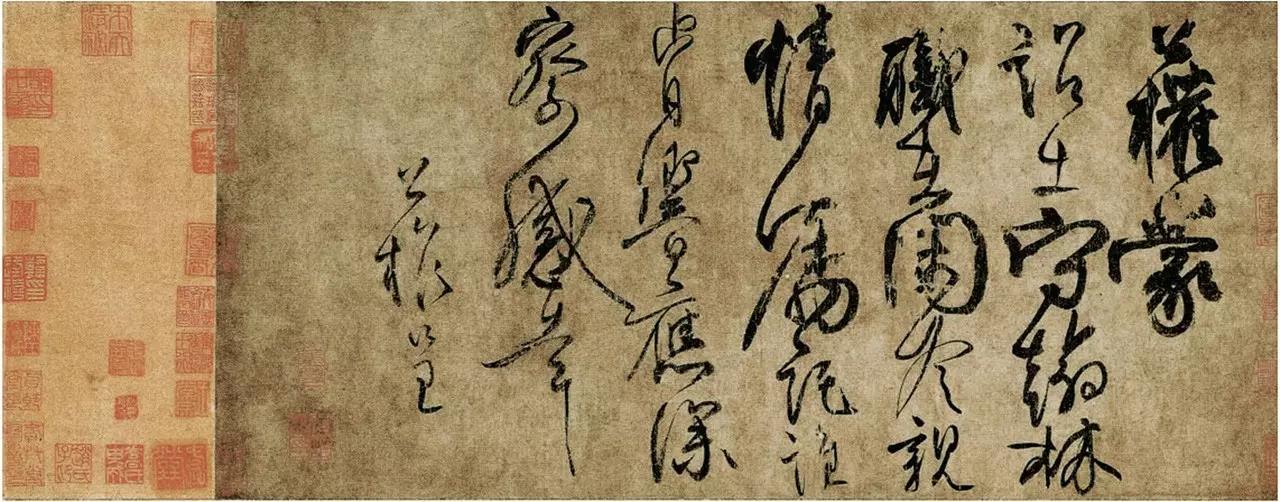 在书法艺术的表现形式中,作为静态书体的篆、隶、楷书,用笔内敛平和,更多地表达一种静穆平和的秩序感;作为动态书体的行、草书,用笔跌宕飞动、变化莫测,追求犹如交响乐般的强烈节奏。这种节奏性在草书中发挥至极致,尤其是张旭、怀素的狂草,变动如鬼神,不辨端倪,对书法的理性认识和感性表达在草书中合二为一。某种程度上,草书与原始刻符中体现出的人性本初有意无意的表达方式尤为契合。