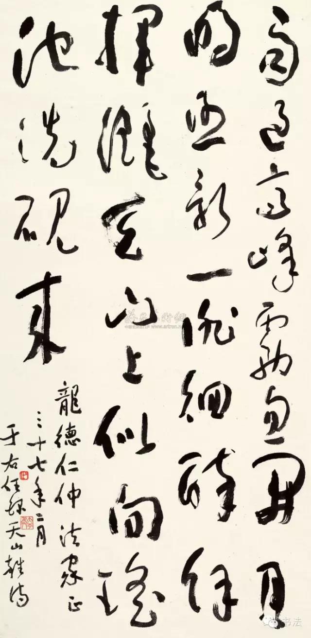 于右任从11岁开始,在毛班香私塾里师从毛汉诗学草书,练习王羲之的《鹅字帖》,是习行书、草书之始。后来他又醉心于遒劲峻拔、庄重茂密的北魏碑帖,废寝忘食,不遗余力地练习。中年以后,又专攻草书,自称:“余中年学草,每日仅记一字(即每日一个字写无数次),两三年间,可以执笔。”
