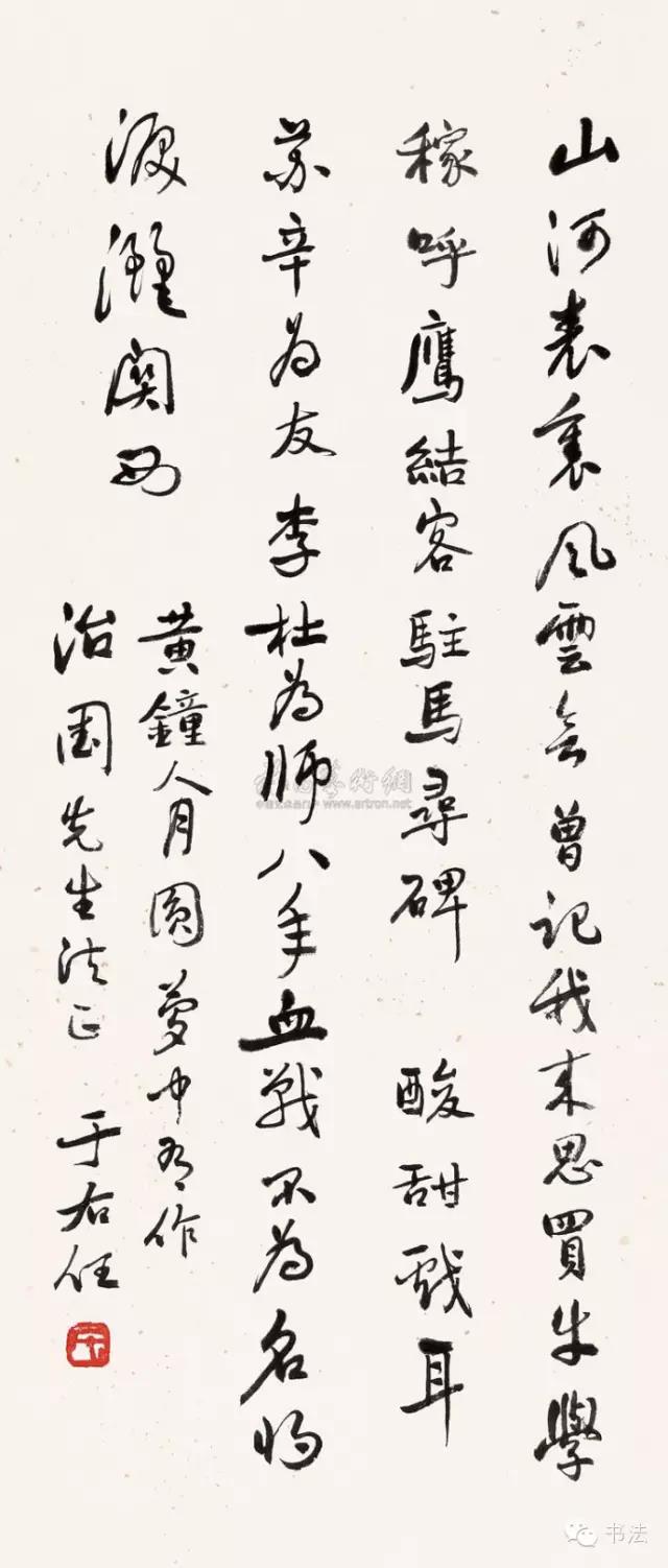 于右任为人写字,不看来者的职位与身份,标准是他喜不喜欢。宋子文很喜欢于右任的字,特置一把精贵的扇面,托人请于右任题墨。于右任拒绝。但南京夫子庙大集成酒馆的女侍求字,于右任并不因她的职业低微而拒绝,当即写了一副:“玉壶卖春赏雨茅屋;座中佳士左右修竹”。